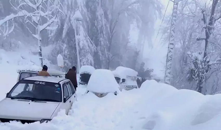 According to tunnel authorities, more than 10 inches of snow has accumulated at the Lowari Tunnel. Efforts to clear the snow from Lowari Road are underway using heavy machinery.