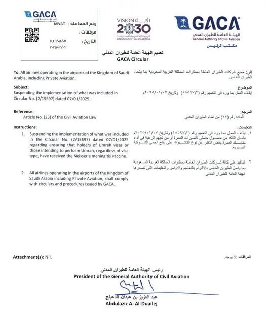 Airlines and travel operators are expected to adjust their guidelines in light of the new directive. However, travellers are advised to stay updated on any health and safety requirements issued by Saudi authorities before embarking on their pilgrimage.