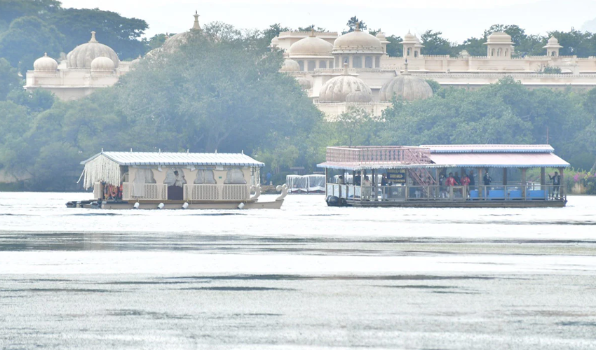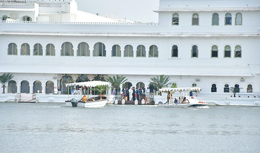 Boat procession to The Leela Palace: