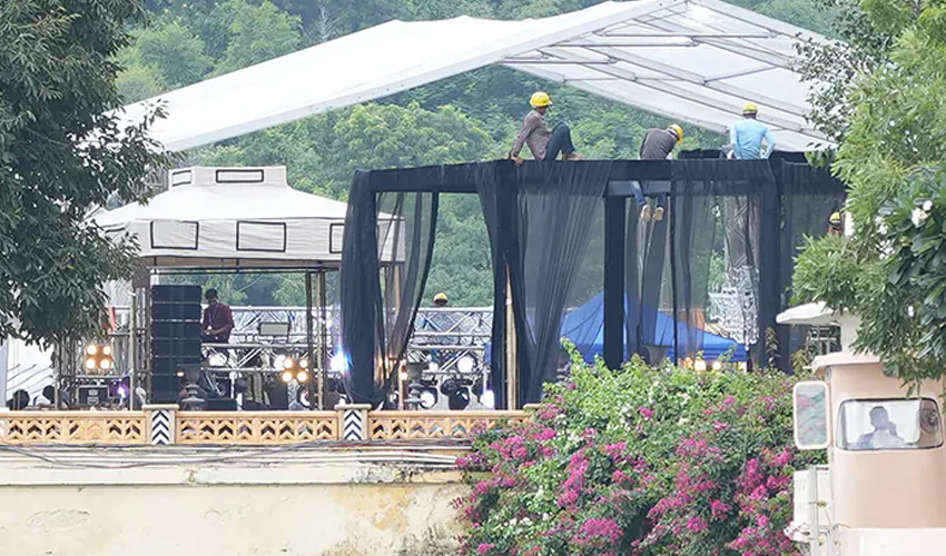 The festivities have already begun with a grand sangeet ceremony and the couple's arrival at the wedding venue via a beautifully decorated boat.