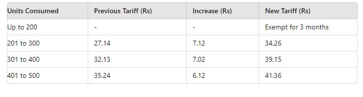 New rates include an Rs 8 per unit hike for commercial consumers, Rs 6.5 for the agricultural sector, and Rs 5.5 per unit for large consumers. The tariff for commercial consumers will rise by Rs 8.04 per unit, bringing the new rate to Rs 77.15 per unit starting in July.