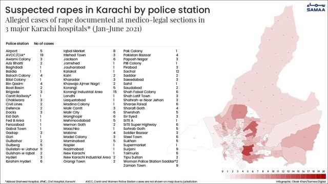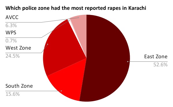 The hotspot is Karachi’s East Zone (East, Malir and Korangi districts). This area had over half of the city’s alleged rapes.