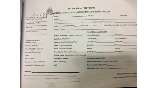 Details such as whether the victim had taken a bath after the rape (washing away evidence), had passed urine or stool, need to be documented. The form mentions marital status, including the option of divorced, because as Dr Summaiya says, even divorced women can be raped. It was not previously part of the form.