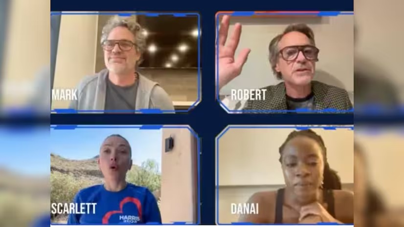 The short clip opens with Scarlett Johansson initiating a video call with her Marvel co-stars. The actors exchange witty banter, reminiscing about their iconic characters, before diving into a light-hearted debate on finding the perfect campaign slogan for Harris. In a humorous twist, the group jokingly settles on the phrase “Down with Democracy” — only for Ruffalo, known for his passionate activism, to intervene and guide them back on track. With a dramatic Marvel-inspired score playing in the background, the clip ends on a serious note, urging Americans to exercise their right to vote in what Ruffalo terms “the most consequential election of our lives.”