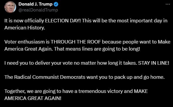 On social media, both Trump and Harris issued rallying calls to voters as polling began. Kamala Harris, addressing Americans via X, emphasized the election’s importance, saying, “America, this is your moment to make your voice heard.”