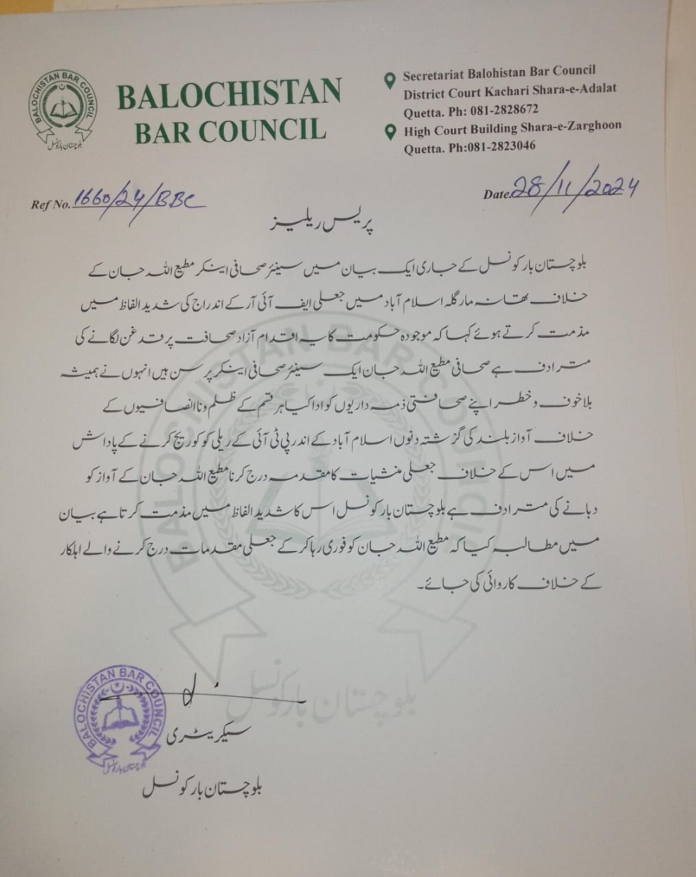 The statement called for an end to the series of false FIRs and illegal detentions against journalists, urging the government to take immediate action against those responsible for these violations.