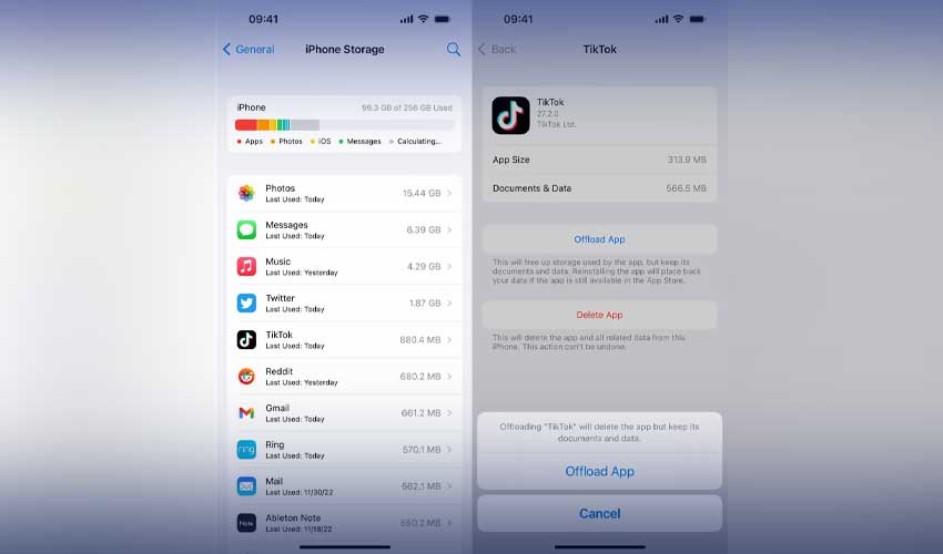 - Select an app and tap "Offload App"