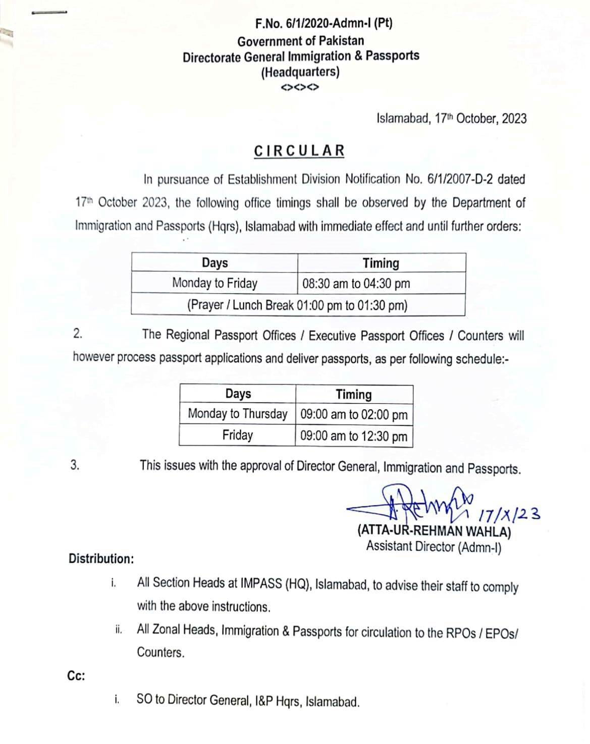 This modification in office hours has been implemented with the approval of the Director General of Immigration and Passports, as per an official announcement.