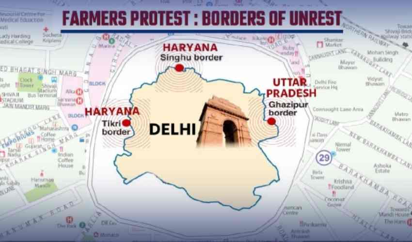 Delhi has been fortified to stop the farmers from entering the city, with key border points - Ghazipur, Tikri, and Singhu - barricaded. A month-long Section 144 has been imposed in Delhi.