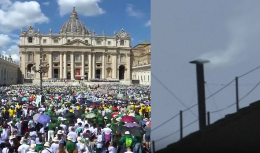 All eyes are on the main balcony of St. Peter’s Basilica.